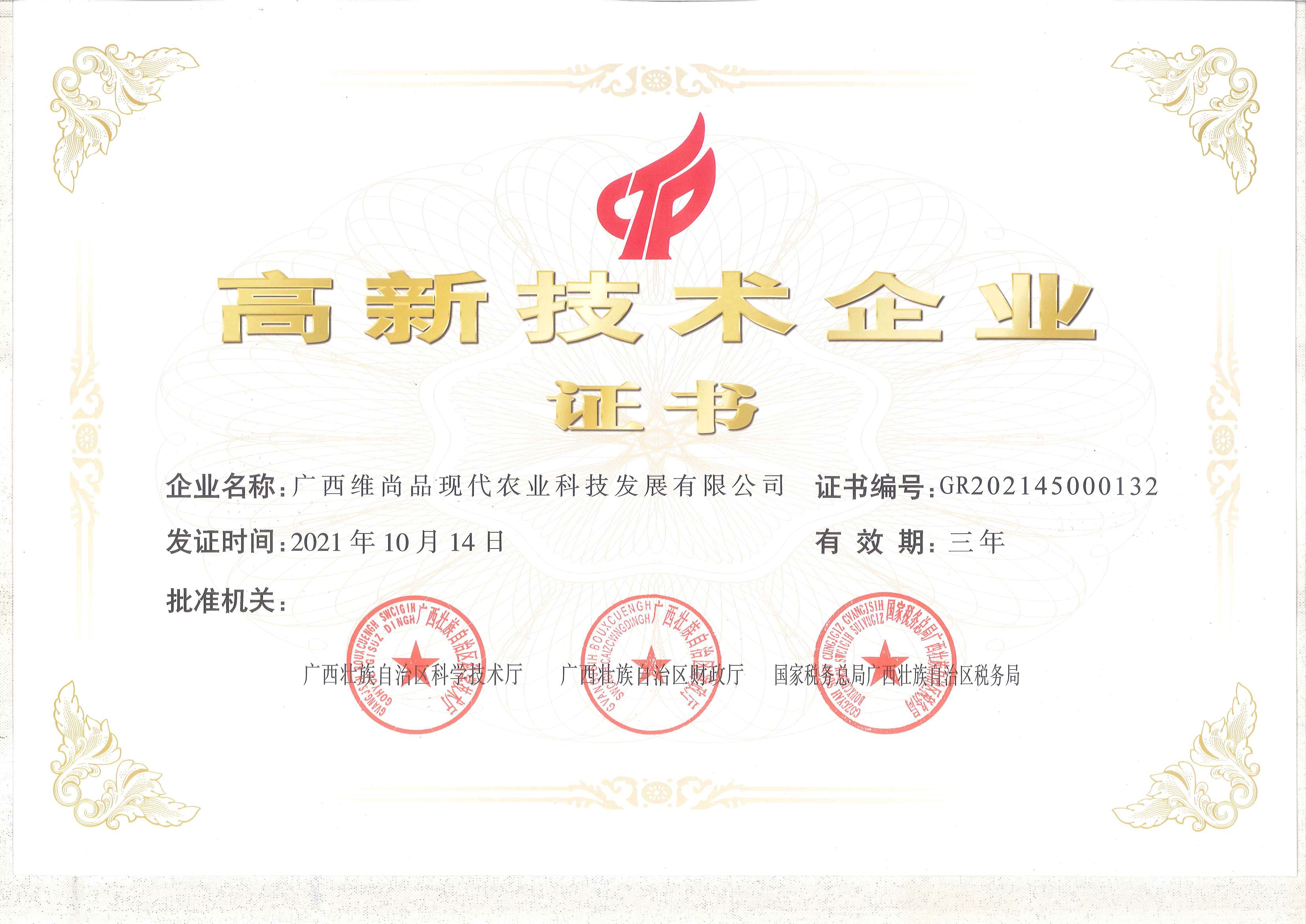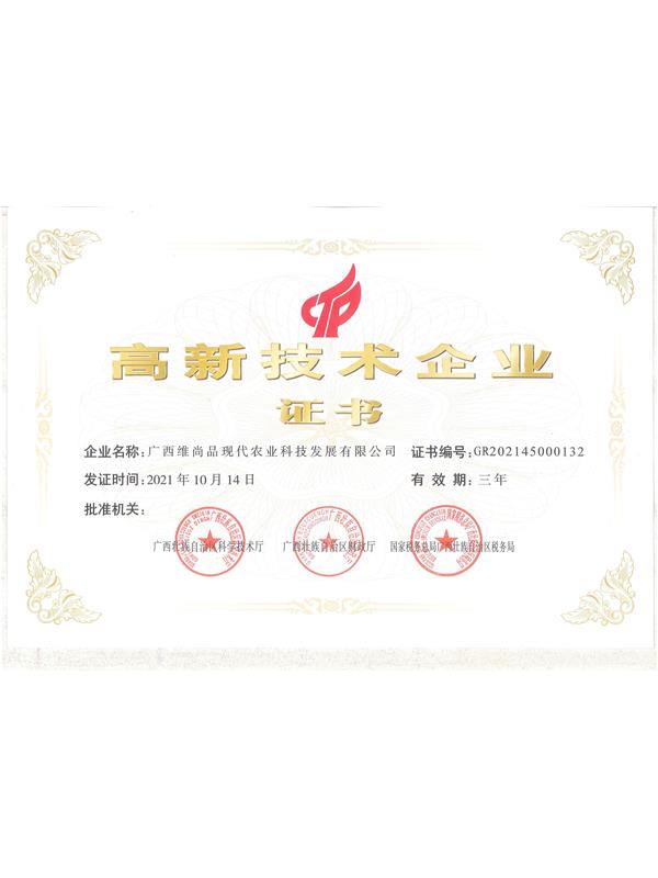 • 2022年維尚品高新企業(yè)證書